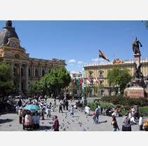 1809年 ラパスで独立運動が起こる 1816年 現アルゼンチンの一部が独立宣言 1825年8月6日 アルト・ペルー独立宣言 キトとともに南米で最も早く独立運動が起こったが、解放までに最も時間を要した国のひとつである。解放者ボリーバルにちなんでボリーバル共和国とし、その後ボリビア共和国に変更された。当時のボリビアの人口は約110万人。スペイン語を話したのは国民の2割に過ぎず、ポトシ銀山は衰退、自由貿易化の波にさらされ国際市場における競争力に乏しい状態での独立となった。 |