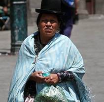 地域と気候によって生活習慣同様大きく異なる衣服ですが、まずはアンデス高地の「チョリータ」を紹介しましょう。ラパスを歩いていると当然のごとく目にする民族衣装の女性たち。チョリータと呼ばれる彼女たちのいでたちは三つ編みに山高帽、房飾りのついた大ぶりのショールを肩にかけ、たっぷりレースのスカートにペタンコ靴。本来は男性がかぶる山高帽はいうまでもなくヨーロッパ文化から吸収されたものですが、頭のてっぺんから足元までバランスよく着こなしている女性たちの姿は、ボリビア文化の象徴であるともいえるでしょう。 |