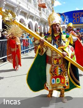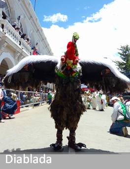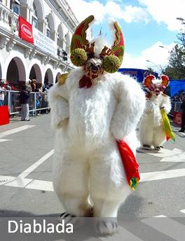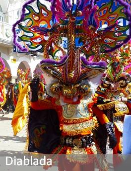 踊りの種類以上に衣装があるのです。それぞれに由来があり、特徴があり、ボリビア人の想いが込められた衣装の数々をお楽しみください。 …どの踊りの衣装かわかりますか? アイコンをクリックすると全体画像がご覧になられます。 |